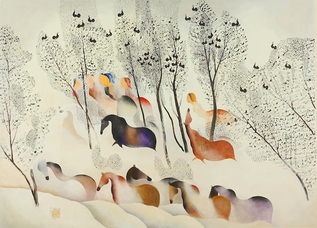 او در آغاز دهۀ 1360 روش ويژۀ خود را كه مشخصۀ آن اسب‌های تجريد يافته بود پی ريخت كه به نشان هنری وی معروف شد. نقاشی‌های او برآمده از افسانه‌های کهن سرزمین مادری است؛ آنجا که اسب، نشانی از صلح، آرامش و آزادگی بوده و هست.